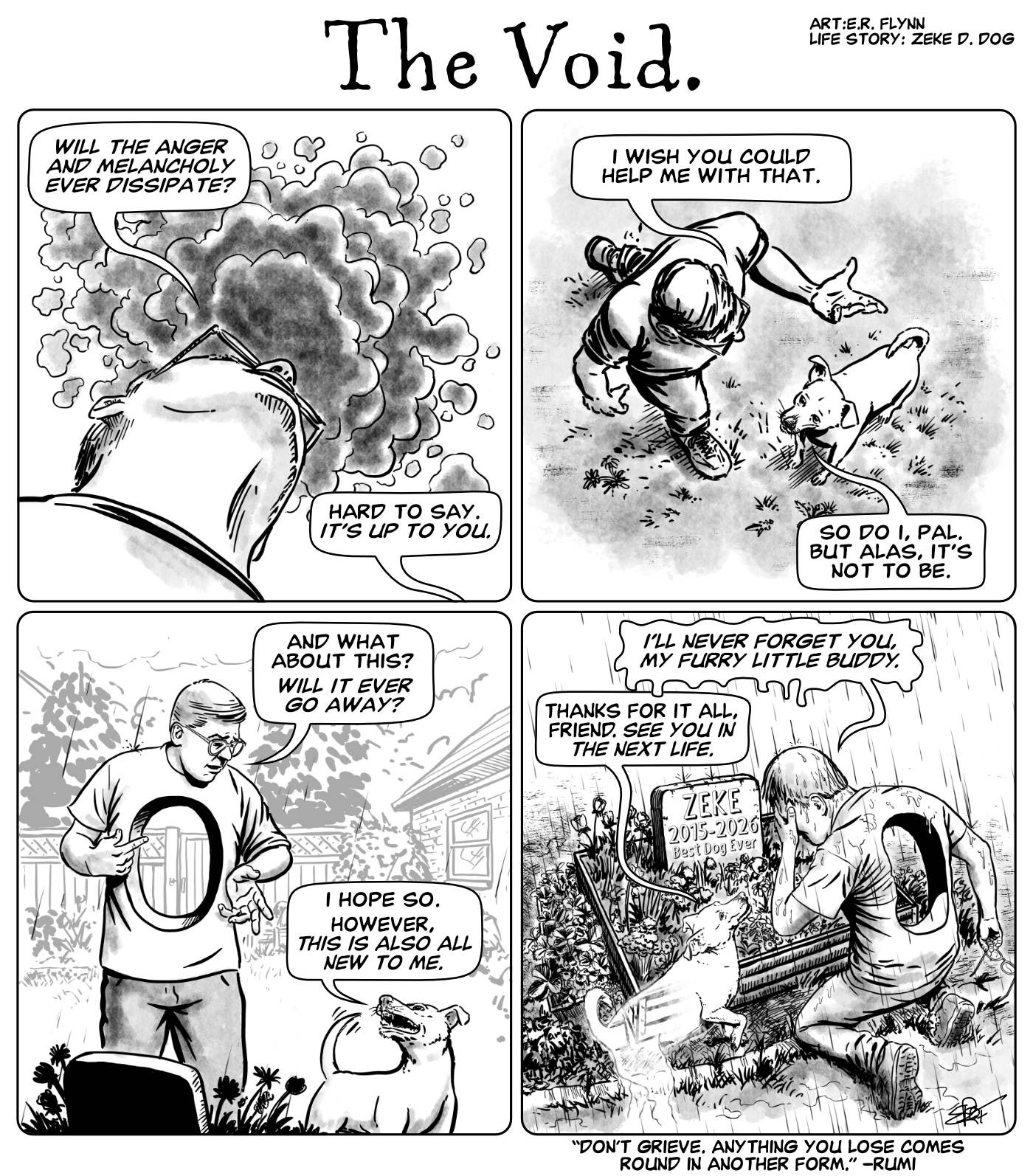 I’m using Zeke’s death as a motivation to kick my creativity back into gear. I’d been futzing around for some time on creating a book that was a compendium of my Zeke-inspired comics.
